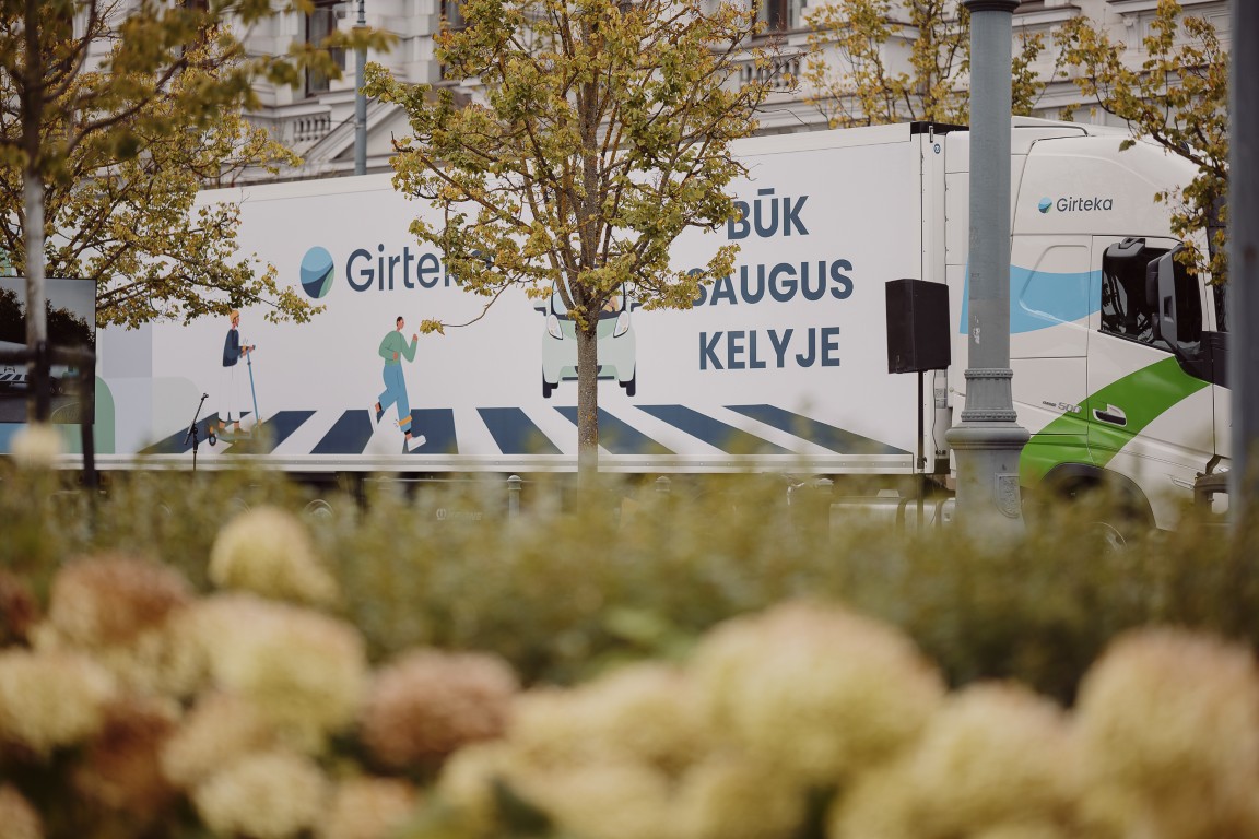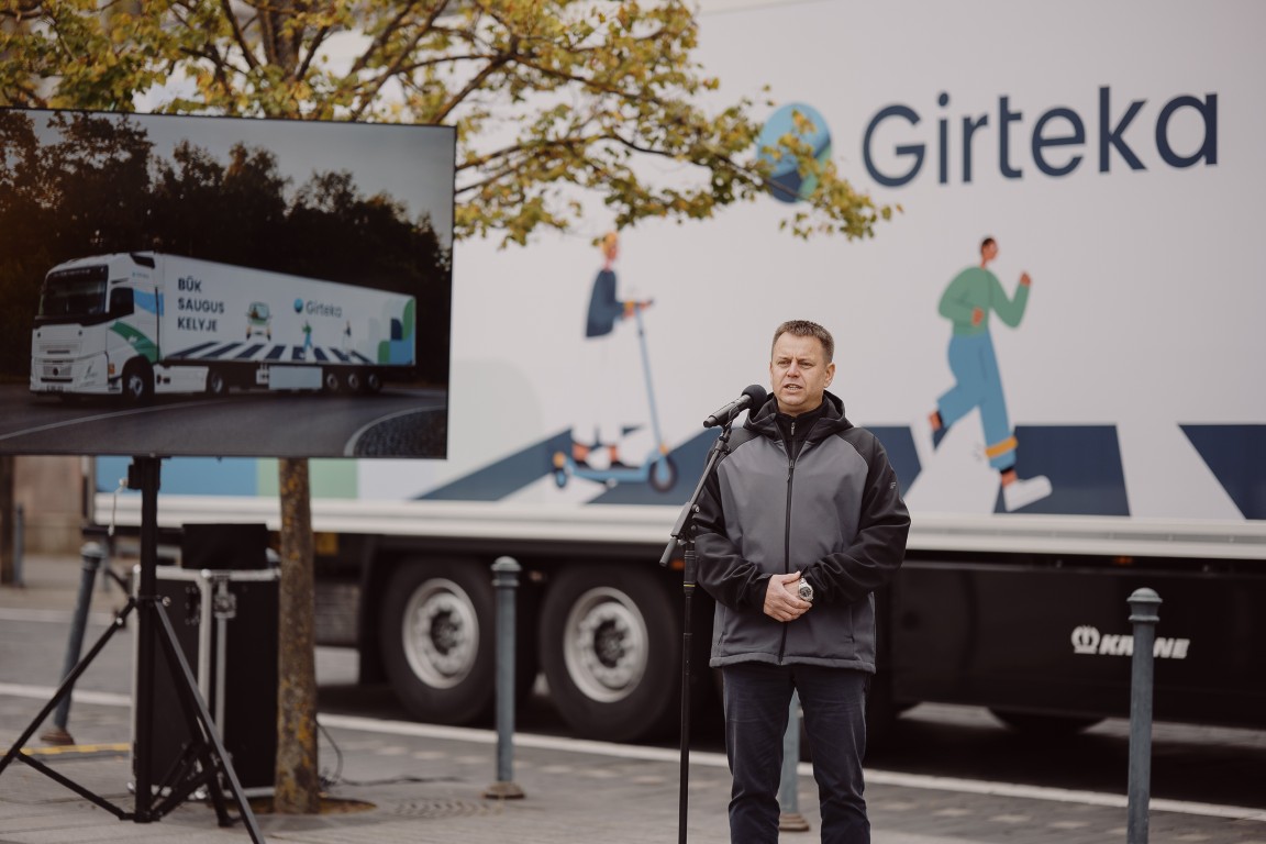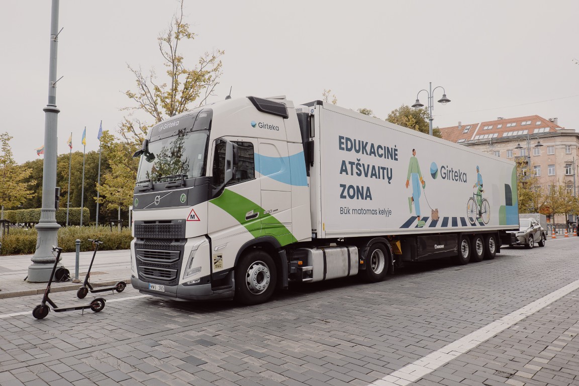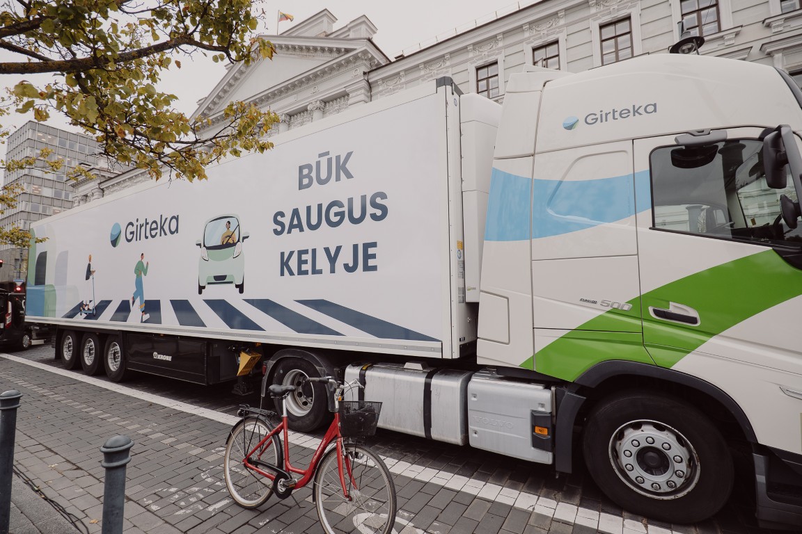 „Per kelias savaites karavanas aplankys mokyklas, esančias skirtinguose Lietuvos miestuose ir miesteliuose. Mintis – paprasta, bet svarbi – kalbėti apie saugų eismą vaikams būtina nuolat. Ypač mokslo metų pradžioje, kai vaikai tampa labiau savarankiški – patys eina į mokyklą, grįžta namo, vyksta viešuoju transportu. Be to, tai metas, kai pradeda anksčiau temti, todėl dar labiau išauga atšvaitų svarba, – apie kampanijos idėją pasakoja „Girteka Transport“ direktorius Mindaugas Paulauskas. – Vaikus būtina supažindinti su vilkikais ir jų aklosiomis zonomis, nes šalia didelių gabaritų transporto priemonių taisyklės yra kitokios nei šalia lengvųjų automobilių. Vilkiko akloji zona yra didelė, o sustojimo kelias – ilgas. Todėl svarbu, kad vaikai žinotų, kokiu atstumu saugu apeiti vilkiką, kaip elgtis prie perėjos, kai artėja vilkikas, ir kaip išlikti matomiems.“