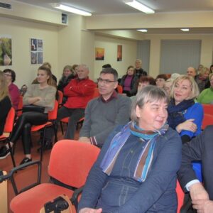 Susirinkusiai publikai autorė atskleidė kiekvienos novelės atsiradimo istoriją, pasakojimo įtaigą sustiprindama gražiausių Austrijos kampelių vaizdais. Vyresn. bibliotekininkė Leokadija Sušinskaitė perskaitė ištrauką iš pristatomos knygos.