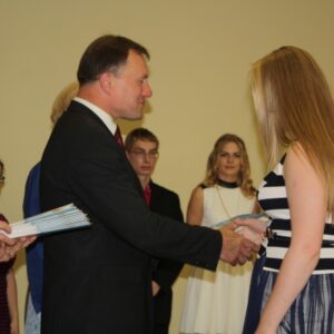 Vrubliauskas padėkojo centro mokytojams, dėstytojams, mokinių tėveliams už jų kantrybę, šilumą, perduotas žinias ir patirtį mokinimas. „O jaunimui linkiu sėkmės ir atsakomybės žengiant savarankiškumo keliu“, – sakė rajono vadovas.
