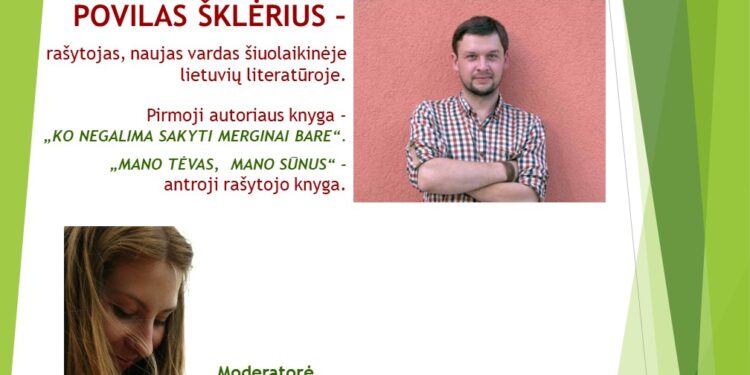 Rugsėjo 14 d. 17 val. bibliotekoje įvyks literatūros ir muzikos vakaras. Alytiškiai galės susipažinti su nauju vardu šiuolaikinėje lietuvių literatūroje – rašytoju Povilu Šklėrium. Svečią kalbins literatūrologė Neringa Butnoriūtė. Literatūrinius pašnekesius papildys Dovilės Dimšaitės vokalas ir muzika.