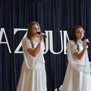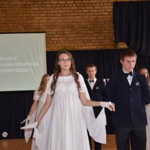 Nuostabiais savo globėjo Adomo Mickevičiaus eilėraščiais ir jo gyvenimo istorijomis, skambiomis dainomis ir linksmais šokiais susirinkusiuosius linksmino gimnazijos mokiniai.