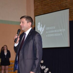 – Prasideda sekantis Dieveniškių mokyklos etapas. Gimnazijos statuso įgijimas reikalavo didžiulių pastangų. Mūsų bendro tikslo siekimas atvedė prie tokio rezultato, su kuo Jus visus nuoširdžiai sveikinu. Linkiu visko, kas geriausia Dieveniškių Adomo Mickevičiaus gimnazijai. Būkime naujų įstaigos pasiekimų liudininkais! – kalbėjo Šalčininkų rajono savivaldybės meras Zdzislav Palevič.