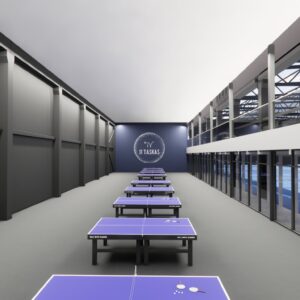 Specialiai stalo tenisui pritaikytoje erdvėje bus įrengta 10 profesionalių stalo teniso aikštelių, moderni apšvietimo sistema ir visos sąlygos tiek profesionalioms treniruotėms, tiek tarptautiniams turnyrams organizuoti. Akademijos infrastruktūra bus pritaikyta ne tik sportininkams, bet ir žiūrovams – varžybų, treniruočių ir stovyklų stebėjimui bus įrengta stebėjimo erdvė.