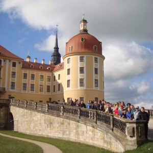 Pakeliui į Drezdeną sustojome prie išpuoselėtos Moritzburgo pilies, kuri buvo kunigaikščio Augusto Stipriojo medžioklės dvaras. Apsupti miškų ir vandens ant dirbtinės salos pastatyti barokiniai rūmai – gražiausi rūmai Saksonijos žemėse. ,,Nebaigta simfonija“ dažnai vadinamas rūmų parkas alsuoja prabangia ramybe, stebina skulptūrų, fontanų gausa.