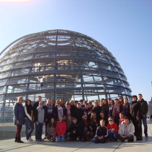 Toliau kelionę tęsėme Berlyno link. Šį Vokietijos didmiestį, turintį apie 3 500 000 gyventojų, pasiekėme jau sutemus. Mūsų laukė jaukus viešbutis. Pernakvoję pradėjome pažintį su Berlynu, Vokietijos sostine bei antru pagal dydį (po Londono) miestu Europos Sąjungoje. Iki 1990 metų Berlynas buvo padalintas į Rytų Berlyną ir Vakarų Berlyną. Po Vokietijos susijungimo pirmasis Vokietijos Budestagas 1991 metais nutarė, kad Berlynas turi tapti suvienytosios Vokietijos sostine ir Bundestagu bei vyriausybės buvimo vieta. Todėl savo pažintį su šiuo Europos didmiesčiu pradėjome nuo istorinės vietos – Reichstago, dabar vadinamo Bundestagu, kur posėdžiauja Vokietijos parlamentas, turintis 631 narį. Praėję atidžią patikrą, atsidūrėme istoriniuose rūmuose, kurie žymi ir Antrojo pasaulinio karo pabaigą – 1945 metų gegužės 9 dieną ant vieno iš Reichstago bokštų buvo iškelta Sovietų Sąjungos vėliava. Greitaeigiu liftu pakilę ant pastato stogo grožėjomės Berlyno panorama, matėme A. Merkel, Vokietijos kanclerės, rezidenciją. Stovint vienoje pastato pusėje driekėsi buvęs Vakarų Berlynas, perėjus į kitą pusę – buvęs Rytų Berlynas. Šiame pastate sutikome turistų iš Lietuvos, kadangi tai pastatas, traukiantis lankytojus iš viso pasaulio.