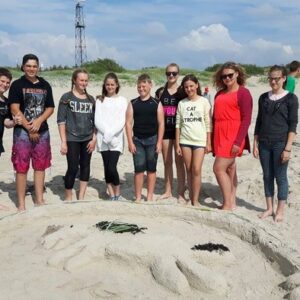 Kelias dienas stovyklautojai praleido Šventojoje prie Baltijos jūros. Čia jaunimas  ne tik ilsėjosi, maudėsi,  bet statė iš smėlio skulptūras, traukė  virvę, dalyvavo Gerumo vakare.