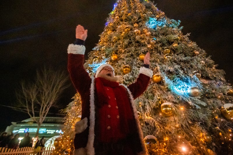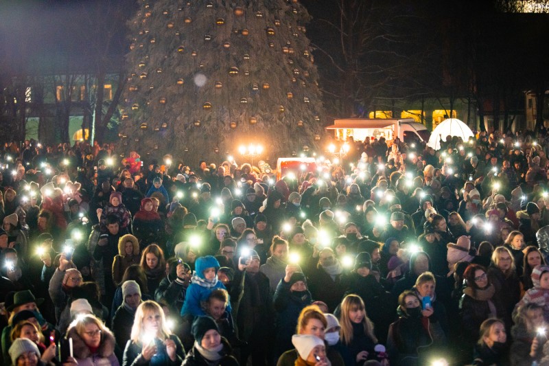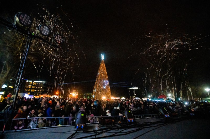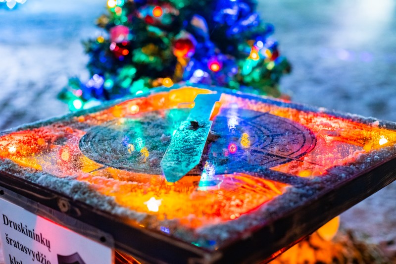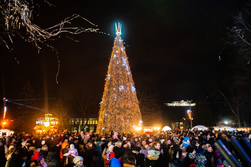 Visą mėnesį Druskininkai ruošėsi pasitikti šventinį laikotarpį ir miesto svečius: rėdėsi šviesos instaliacijomis, kūrė rekordinį kalėdinių eglučių parką, kartu su Seneliu Kalėda ir nykštukais pakavo kalnus dovanų ir slapstė jas įvairiuose kurorto kampeliuose. Ir pagaliau pirmoji kalėdinė dovana išpakuota – įžiebta kurorto eglė! Iš pirmo žvilgsnio dienos šviesoje paprasta eglė tamsoje virto nepaprasta: auksu suspindo karališka karūna, o apsiaustas, nusagstytas švytinčiais briliantais, akimirksniu keitė savo raštus.