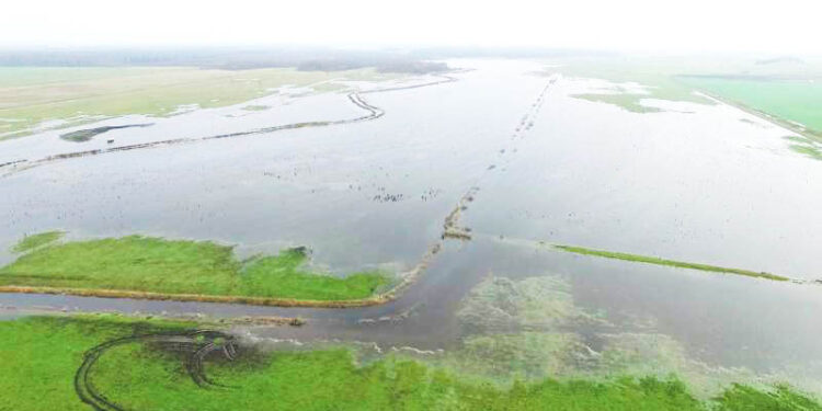 Didelė dalis paukščių persikėlė ir į užtvindytus plotus. Žąsys, gulbės nebylės ir giesmininkės, jei tik nesimaitina želmenyse, plaukioja vandens seklumose. Čia gausu paprastųjų kirų, pempių.