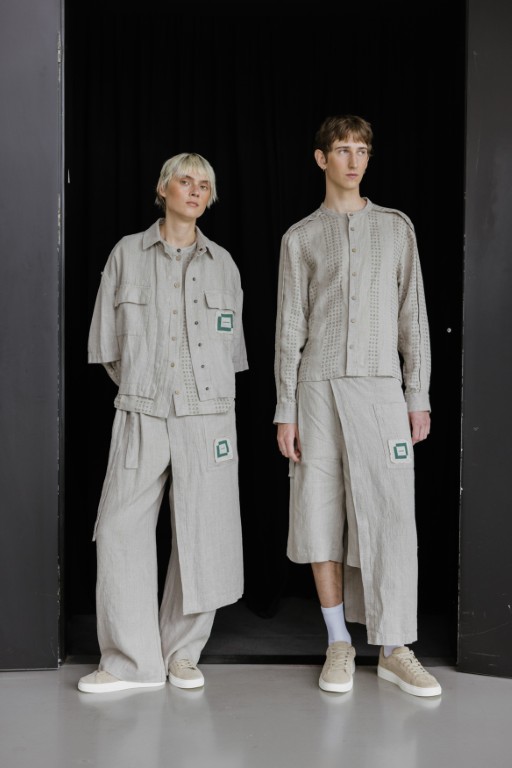 „Šūkis įkvėpė mane pasirinkti aprangos koncepciją ir audinį – natūralios spalvos liną, būdingą Baltijos regionui. Kolekciją sudaro aštuoni skirtingi lininiai drabužiai, kuriuos gidai gali derinti tarpusavyje priklausomai nuo oro ir nuotaikos. Tokia kapsulinė sistema leidžia kiekvienam darbuotojui atrodyti skirtingai ir kartu išlaikyti bendrą paviljono identitetą“, – pasakoja dizainerė.