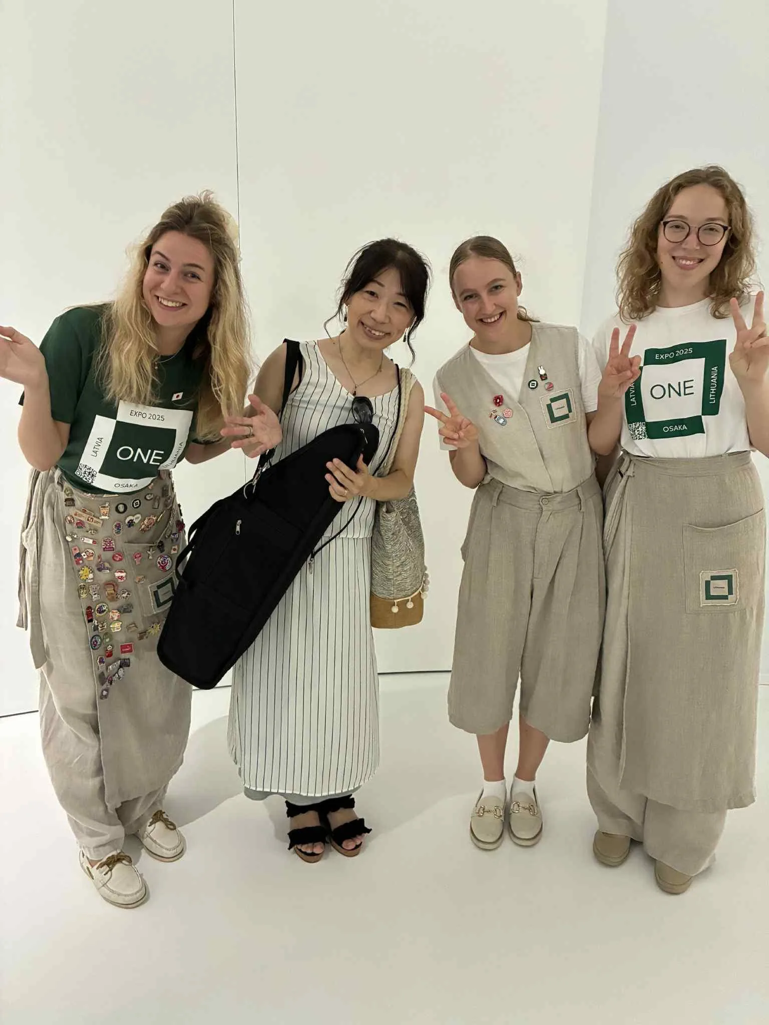 Gidų uniformos, nors ir pasiūtos iš tradicinio audinio, pasižymi šiuolaikišku, funkcionaliu dizainu. Kai kurie  drabužiai išmarginti raštais, kuriuos sukurti įkvėpė baltų simboliai ir kaligrafiški japonų rašmenys, kviečiantys užmegzti pirmąjį ryšį ir bendrauti. Dizainerė pažymi, kad aprangos idėja buvo siekiama atspindėti ne tik vienybę, bet ir skirtumų dermę, o pati apranga tapo ne tik stiliaus, bet ir kultūrinio dialogo dalimi, kvietimu patirti bendrystę.