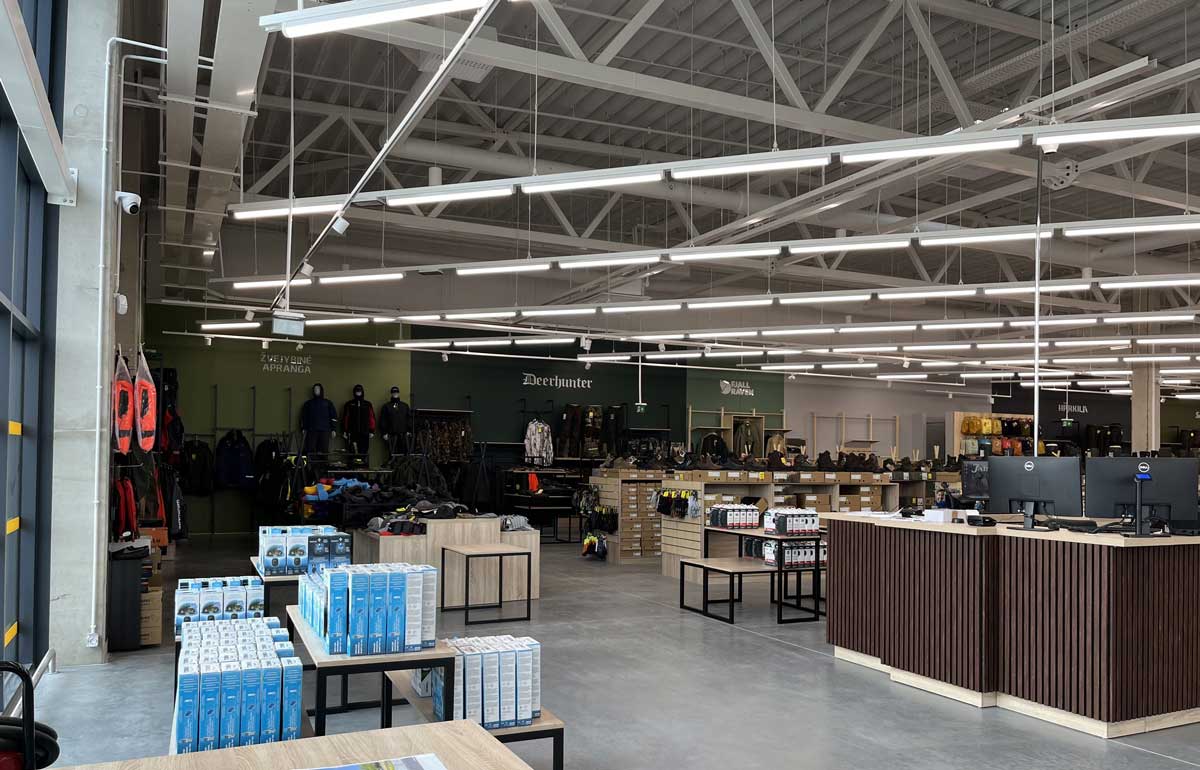 Prie „Megos“ duris atveriančioje „Jahipaun“ parduotuvėje pirkėjai ras „Glock“, „Tikka“, „CZ“, „Beretta“, „Sako“ šaunamųjų ginklų ir šaudmenų, „Vortex“, „Zeiss“, „Leupold“, „Hawke“ optinės įrangos ir taikiklių, „Gerber“, „Victorinox“, „Morakniv“, „Chef’s Choice“ peilių ir įrankių, „Umarex“, „Gamo“ pneumatinių šautuvų ir šaudymo reikmenų, „Rapala“, „Shimano“, „Williams“, „Abu Garcia“ žūklės reikmenų, „Härkila“, „Fjällräven“, „Deerhunter“, „Helikon-Tex“ drabužių, „Fjällräven“, „Helikon-Tex“, „Outwell“ žygiams skirtos įrangos ir kt.