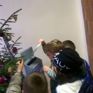 Susirinkę vaikai ne tik rašė savo sveikinimus ir norus Kalėdų seneliui, bet ir žaidė įvairius žaidimus, rungėsi dainų dainavimo rungtyje, spėliojo mįsles, minkles. Visi vaikučiai buvo apdovanoti saldžiomis dovanėlėmis ir linksmi išsiskirstė namo. Laiškai išsiųsti, belieka tik laukti…