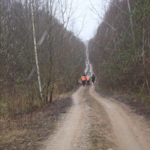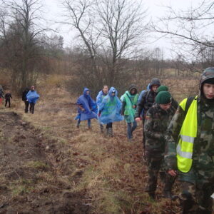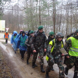 Po ekskursijos VSAT Lazdijų rinktinėje, dar kartą sustojome ir pasitarėme. Susiskirstę į 3 komandas,  pradėjome žygį pėsčiomis. Vadovaujanti komanda vedė žygio dalyvius nuo taško A iki taško B. Taigi, pirma komanda (vadas JŠ Laurynas Račkauskas) vadovavo savo kolegoms maršrutui, kuris driekėsi  iki buvusios Galinių užkardos. Atvykus į      reikiamą vietą JŠ vadas Kęstutis Pileckas trumpai, tačiau  aiškiai papasakojo apie rokadinį kelią , Galinių vietovės istoriją. Galinių kaime vadovavimą  perėmė antra komanda (vadas JŠ Einoras Kelmelis), kuri  nuvedė mus iki Pietų Lietuvos   partizanų srities   vado, Lietuvos laisvės kovos sąjūdžio (LLKS) Gynybos pajėgų vado brigados generolo Adolfo      Ramanausko – Vanago tėviškės Bielėnų kaime, Lazdijų r. Atvykę į istorinę vietą jautėmės   ypač   pakylėti.   Juk stovėjome ant pamatų namo, kuriame nuo 1921 metų gyveno brigados generolas Adolfas Ramanauskas – Vanagas.