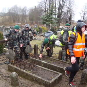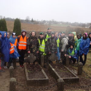 Užkandę, pailsėję tęsėme toliau pažintinį žygį. Vadovavimą JŠ perėmė trečioji komanda (vadas JŠ Aurimas Butkauskas), turėjusi nuvesti visus iš ketvirtojo taško į penktą).  Ši kelio atkarpa buvo ilgiausia. Būdviečio kapuose buvo mūsų penktasis kelionės taškas, arba, kitaip tariant, finišas. Nors buvome pavargę, sušlapę ir purvini „iki ausų”, tačiau užsukome į    Būdviečio kapus, kur  sutvarkėme Lietuvos savanorių P. Mickevičiaus ir S. Povilausko kapus bei tylos minute pagerbėme jų atminimą. Aplankėme ir    knygnešio Jono Kaluškevičiaus kapą.