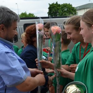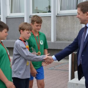 Spausdamas ranką kiekvienam komandos nariui Šalčininkų rajono meras Zdzislav Palevič linkėjo kitų užtikrintų pergalių ir sėkmės. Gimnazijos bendruomenės nariai taip pat suskubo pasveikinti jaunuosius čempionus.