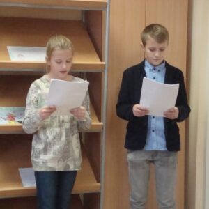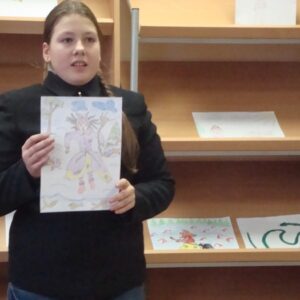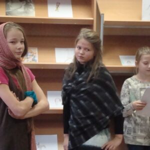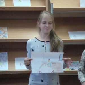 Gimnazijos skaitykloje buvo galima pasigrožėti piešinių parodėle – vaikai iliustravo pasirinktą Salomėjos Nėries pasaką ar poemą. Iš viso pristatyta 17 piešinių. Pamokai einant į pabaigą, kiekvienas penktokas savo piešinuką pristatė ir pakomentavo savo klasės draugams.