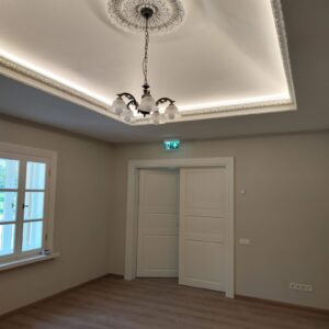 Mozūriškių dvaro sodybos dvarininko name (unikalus kodas Kultūros vertybių registre – 32955) restauruotas istorinių kaminų plytų mūras ir tinkas, atkurtos mūro netektys; išardytas XX a. II p. plytų mūro kaminas, pagal istorinę ikonografinę medžiagą atkurtas buvęs kaminas, atidengta XX a. II p. užmūryta durų anga į buvusią verandą, padidinta durų angos į pirmo aukšto patalpą, išpjauta anga į kitą patalpą; padidintos durų angos pirmo aukšto patalpose, įrengta anga į mansardinio aukšto patalpą, restauruoti betoniniai laiptai su akmenbetonio sienutėmis, dvi mūrinės, tinkuotos puskolonės PV fasade, medinis pastogės karnizas, atkurti frontonų apkalimai medinėmis dailylentėmis ir lentomis, remontuotas pamatas su tinkuotu akmenų mūro cokoliu, restauruoti mediniai vidaus laiptai į mansardą, sieninės spintos, restauruotos kesonų imitacijos lubos, skliautinių lubų dekoras, atkurtos kesonų imitacijos lubos, cokolio mūro ir tinko remontas, verandos cokolio remontas, lauko laiptų ir aikštelės remontas, lauko sienų remontas, istorinių patalpų erdvių atkūrimas, vidaus sienų remontas, atkurtos fasado atviro prieangio kolonos ir tvorelė, veranda, balkonai fasaduose pagal ikonografinę medžiagą, atliktas lubų, grindų, durų ir langų, kaminų, stogo remontas, fasadų pertrynimas, gruntavimas, dažymas, restauruotos atviros medinės sijos, įrengtos alsuojančios nuogrindos, atlikta pamatų ir cokolių vertikali hidroizoliacija, pamatų plyšių injekavimas ir susiuvimas kampuose, cokolio tinko remontas, perdangos stiprinimas, grindų įrengimas, sustiprintos stogo konstrukcijos, apšiltintos patalpos, pakeista stogo danga.