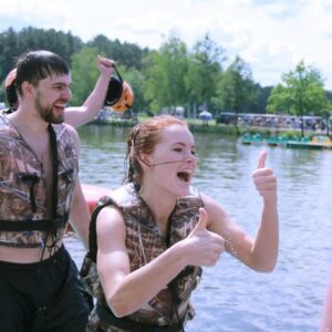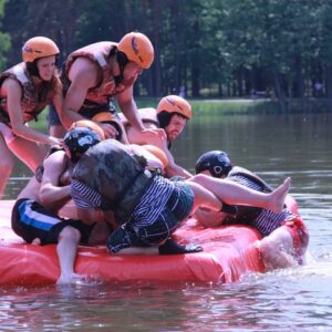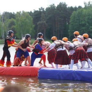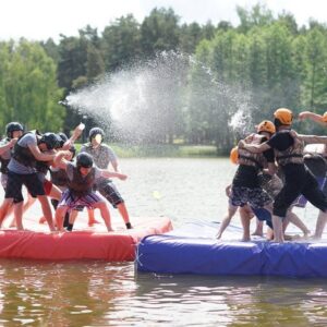 Vandens kovos „Aligatoriai“ – tai M-1 skelbiamos „Nacionalinės vyrų dienos“ naujiena – varžybos, kai ant dviejų plūduriuojančių platformų stovi po komandą iš šešių dalyvių, kurie pasiryžę žūt būt nustumti priešus nuo jų plausto. Tam naudojami įvairiausi kovos būdai, išskyrus smūgius ranka, galva ar koja. Laimi ta komanda, ant kurios platformos išsilaiko bent vienas dalyvis.