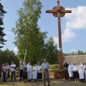 Kaimo gyventojas Bronius Čiras pradėjo maldas už mirusius ir gyvus kaimo gyventojus, jam pritarė visi susirinkę prie kryžiaus. Po to visi trumpam sustojo bendrai istorinei nuotraukai.
