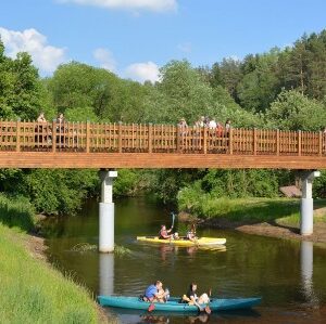 Vėliau visi paskui baltai pasidabinusias dainuojančias kaimo moteris pagrindine gatvele leidosi prie naujai įrengto tilto per Ūlą. Šis tiltas įrengtas Europos Sąjungos ir Varėnos rajono savivaldybės biudžeto lėšomis.